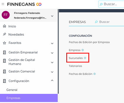 Accedé desde Menú → Configuración → Empresas → Configuración → Sucursales