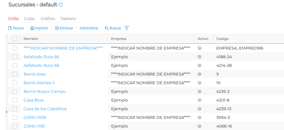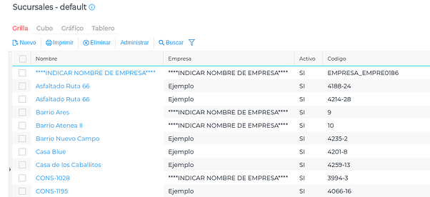 En el sistema, una empresa puede tener varias sucursales. Se utiliza el concepto de sucursal para diferenciar las distintas obras, esto es, cada obra funciona como una sucursal. Las mismas, se generan automáticamente con el nombre de la obra: