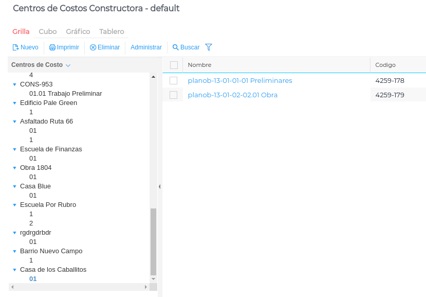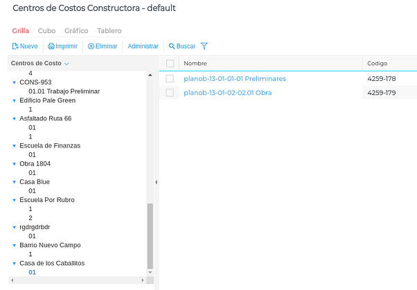 En el árbol de centros de costo se crea una rama por cada obra, de allí se desprende una sub-rama por cada rubro. Y dentro de cada rubro se crea un centro de costo por cada ítem.