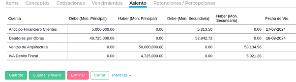 Al guardar la Factura, se puede visualizar el asiento generado.