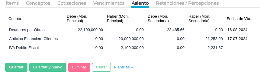 En ese punto se factura el anticipo financiero por la venta de la obra y se cobra.