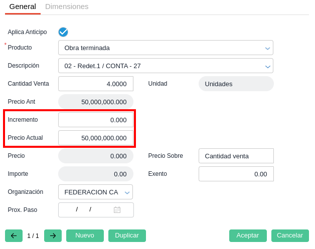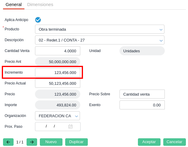 Actualmente aparecen también en las opciones de redeterminación, los incrementos de precio completo por índice e incremento de precio por índice. Recomendamos no utilizarlas por el momento hasta que redefinamos su comportamiento.