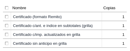 El sistema, además, provee de cuatro tipos de impresión de Certificados: