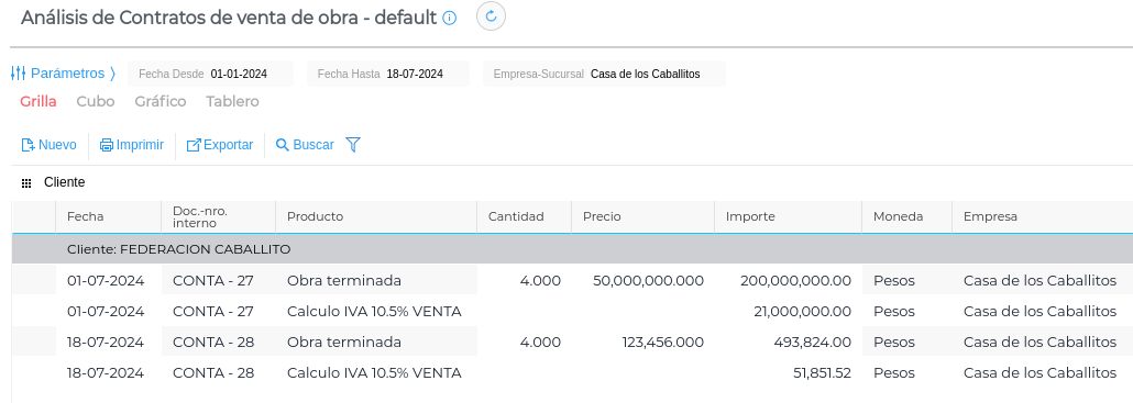 Además, el núcleo funcional de venta de obra, permite manejar la vinculación entre los distintos documentos que se generan en cada paso; administrando también las cantidades pendientes y efectivizando el proceso productivo.