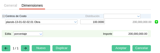 Manualmente se puede editar esta relación para asignar el ítem a más de un centro de costo.