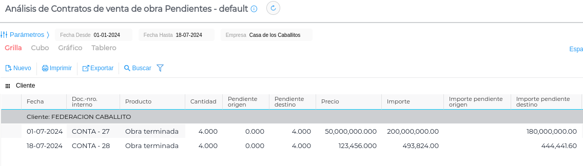 El asistente traerá las cantidades que figuran en el contrato de venta de obra, aún pendientes de certificar: