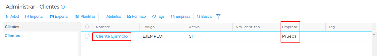 4- En este ejemplo el cliente está privado sólo para la empresa “Prueba” y lo configuraremos para que sea público.