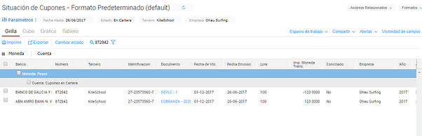 Se accede desde Operación→ Tesorería→ Situación de Cupones.