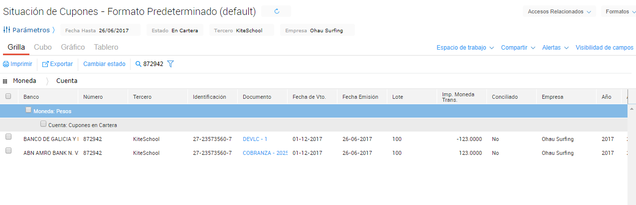 Una vez guardada la operación, podemos observar cómo queda plasmada la devolución mediante el informe Situación de Cupones.