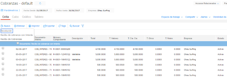 Se accede desde Gestión Empresarial→ Tesorería→ Cobranzas.