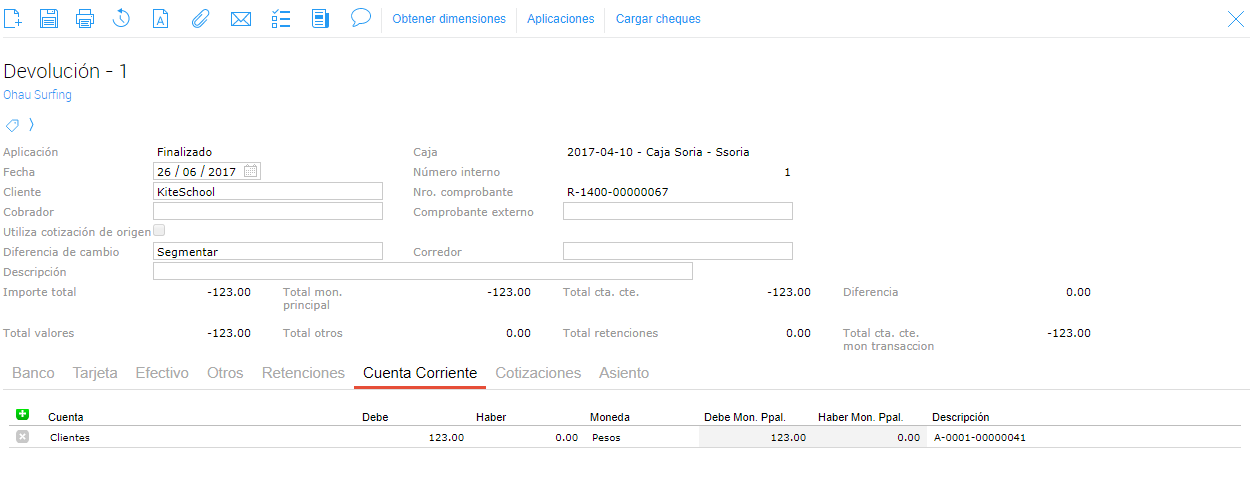 Se realiza una nueva transacción con el documento Devolución: