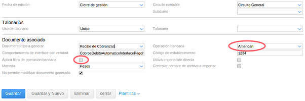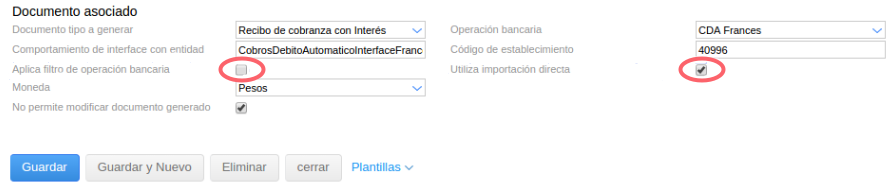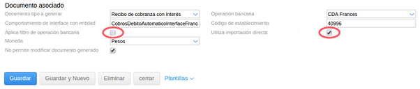 Además, para la importación directa, debe estar desactivado el checkbox Aplica filtro de operación bancaria.