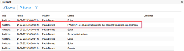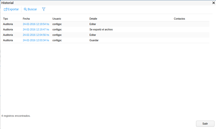 En el Historial de la transacción queda registrada la exportación del archivo.