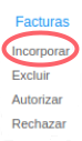Una vez guardada la transacción, se pueden incorporar las facturas a informar presionando el botón “Facturas” y eligiendo la opción “Incorporar”.
