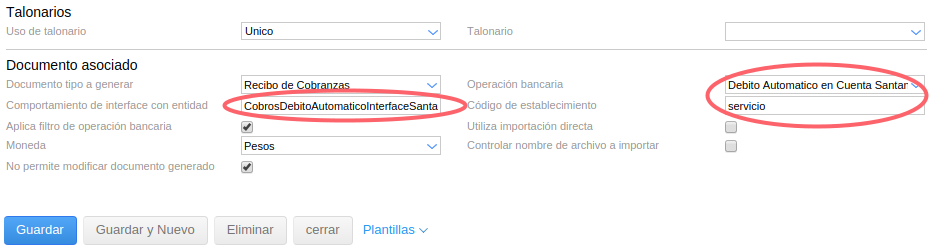- El campo “servicio” debe configurarse en el campo código de establecimiento del tipo de documento CDA correspondiente a “Santander”