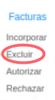 Una vez incorporadas las facturas, el usuario puede excluir manualmente aquellas que no quiera que sean informadas a la entidad de tarjeta de crédito o banco. A tal fin se pueden seleccionar las mismas tildando los checkbox correspondientes y luego presionando el botón “Facturas” y eligiendo la opción “Excluir”.