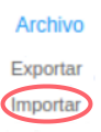 Para importar el archivo se debe hacer clic en el botón “Archivo” y seleccionar la opción “importar”.