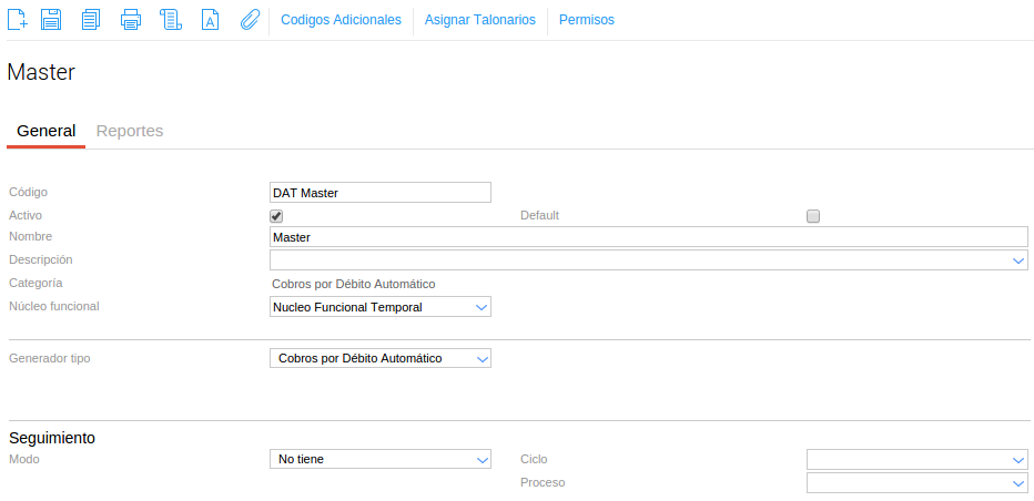 La exportación se realiza en función del formato indicado por el comportamiento definido en el tipo de documento “Cobros por Débito Automático” sobre el que se está trabajando.