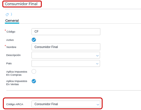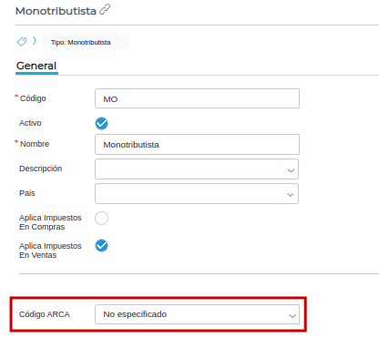 Consulta: : ¿Para que sirve el combobox “Código ARCA” en la configuración de las Categorías Fiscales?.