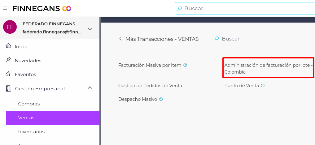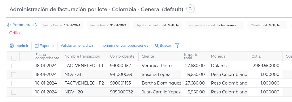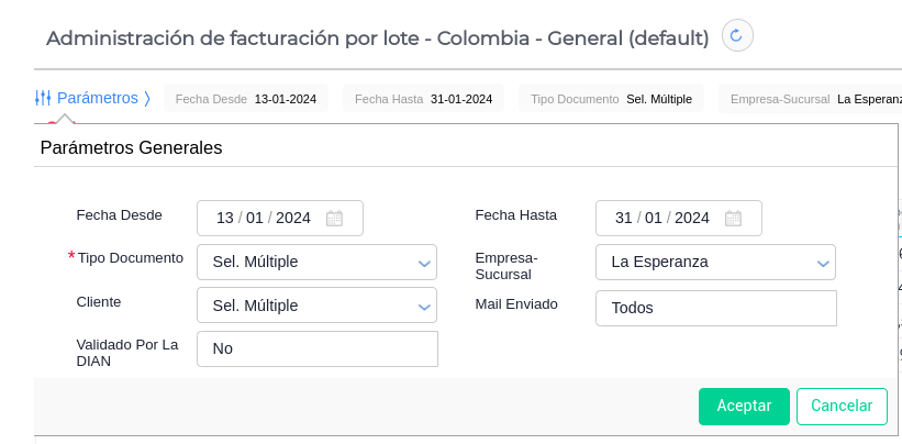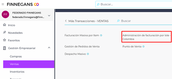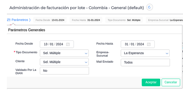 Realizado el paso anterior, debemos ir a la view “Administración de facturación por lote - Colombia”