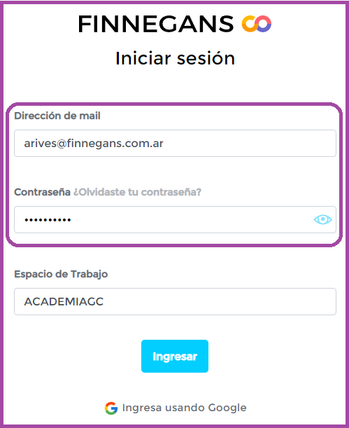 2. Con Google y la dirección de Gmail que tiene acceso a GO.