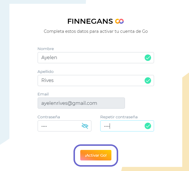 - No llegó el mail para activar la cuenta en Finnegans GO