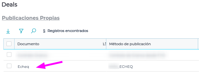Elegir el Documento “Echeq” con método que desee actualizar.