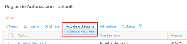 Para actualizar el proceso estándar de Reglas de Autorización se deben seguir los siguientes pasos: