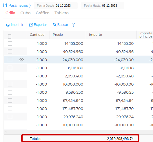 1.D Le dan en aceptar y en el pie del informe van a vizualizar los totales de cada columna.