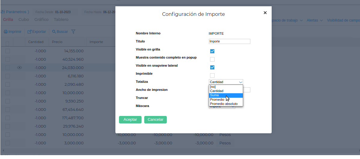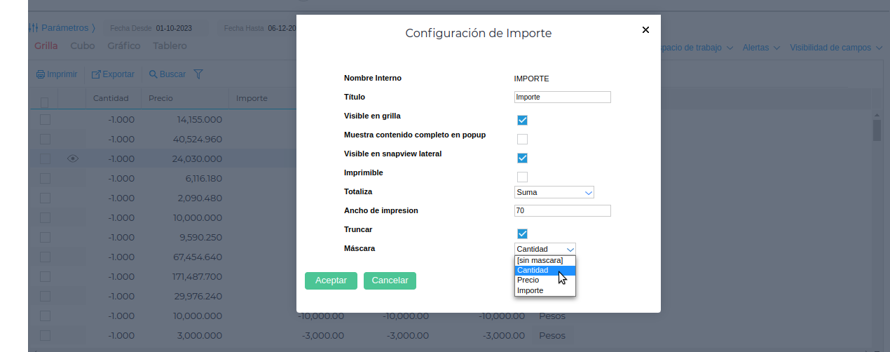 1.C Se puede configurar el campo Máscara, que sirve para redondear los decimales dependiendo de la configuracion general.