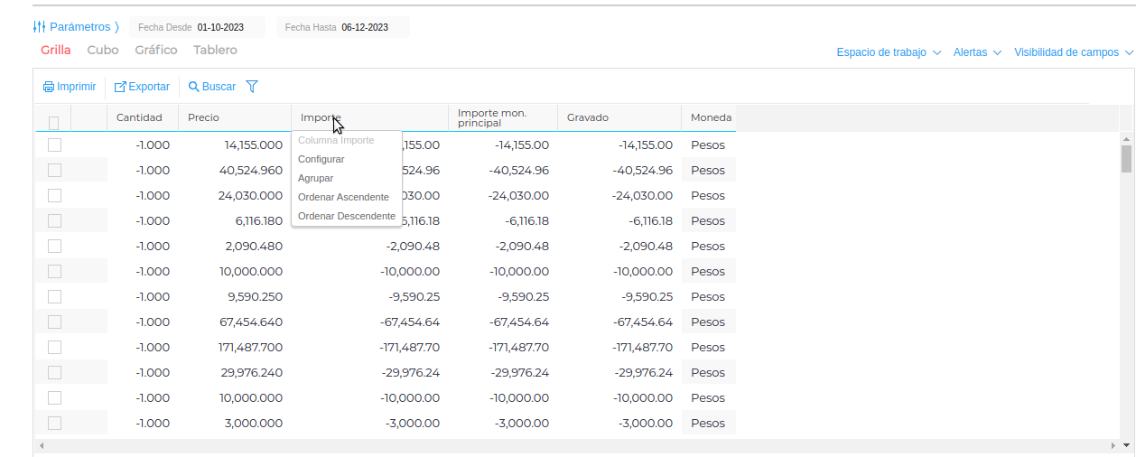 - Suma: Suma los importes de cada campo de esa columna.