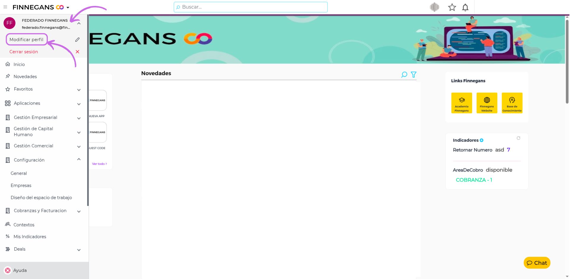 1- Ir a la opción “Mi perfil” en el menú.