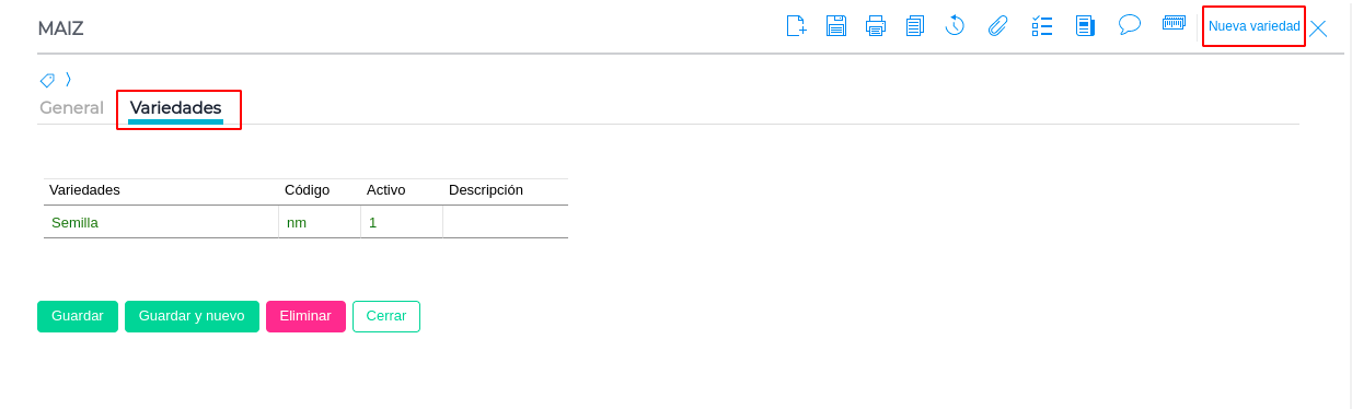 Desde el Maestro de Especie se deberá cargar las nuevas Variedades.
