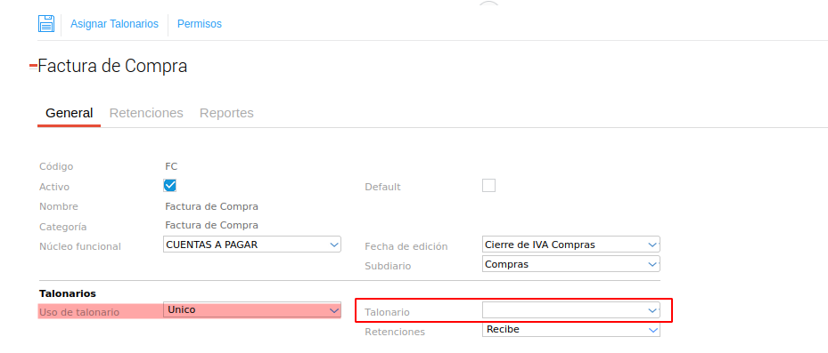 Se debe ingresar al documento en cuestión y configurar el talonario correspondiente.