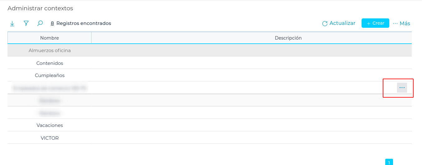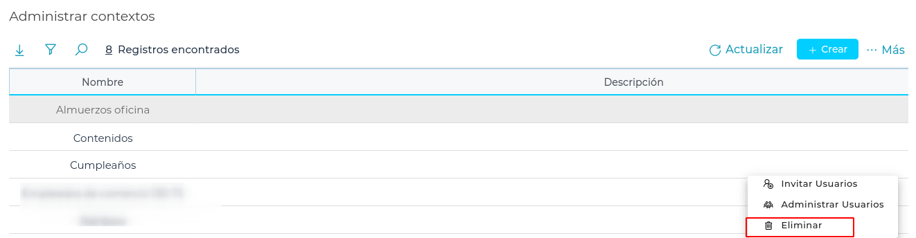 Menú > Administrar > Contextos. - Seleccionar el contexto que deseas eliminar.