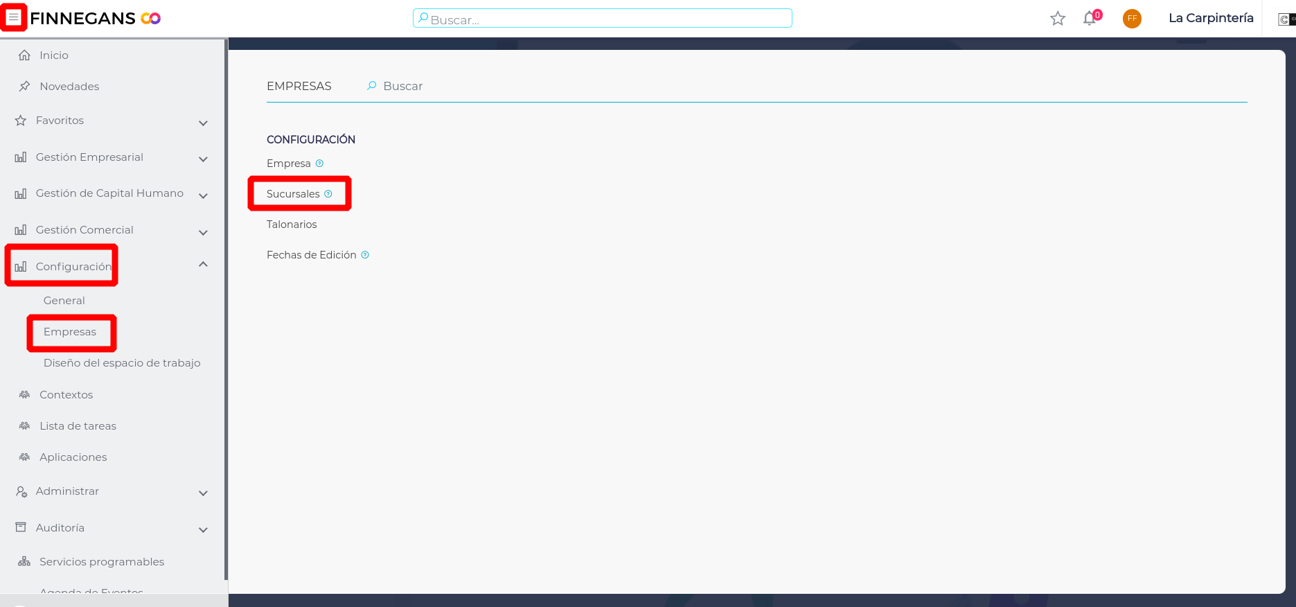 Respuesta: Se debe modificar ingresando a Menú → Configuración → Empresas → Sucursales