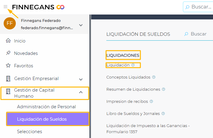 Paso 1: Ingresar al Menú > Gestión de Capital Humano > Liquidación de Sueldos > Liquidación > Liquidación.