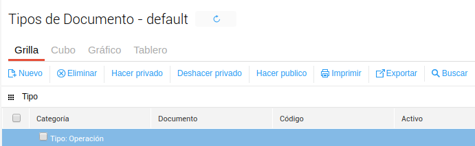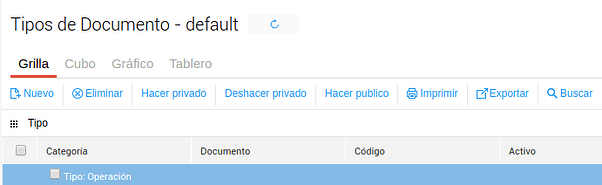 Esta opción sólo está disponible para los documentos Tipo operación. Podés visualizarlos desde la grilla configurando la misma para que agrupe por Tipo.