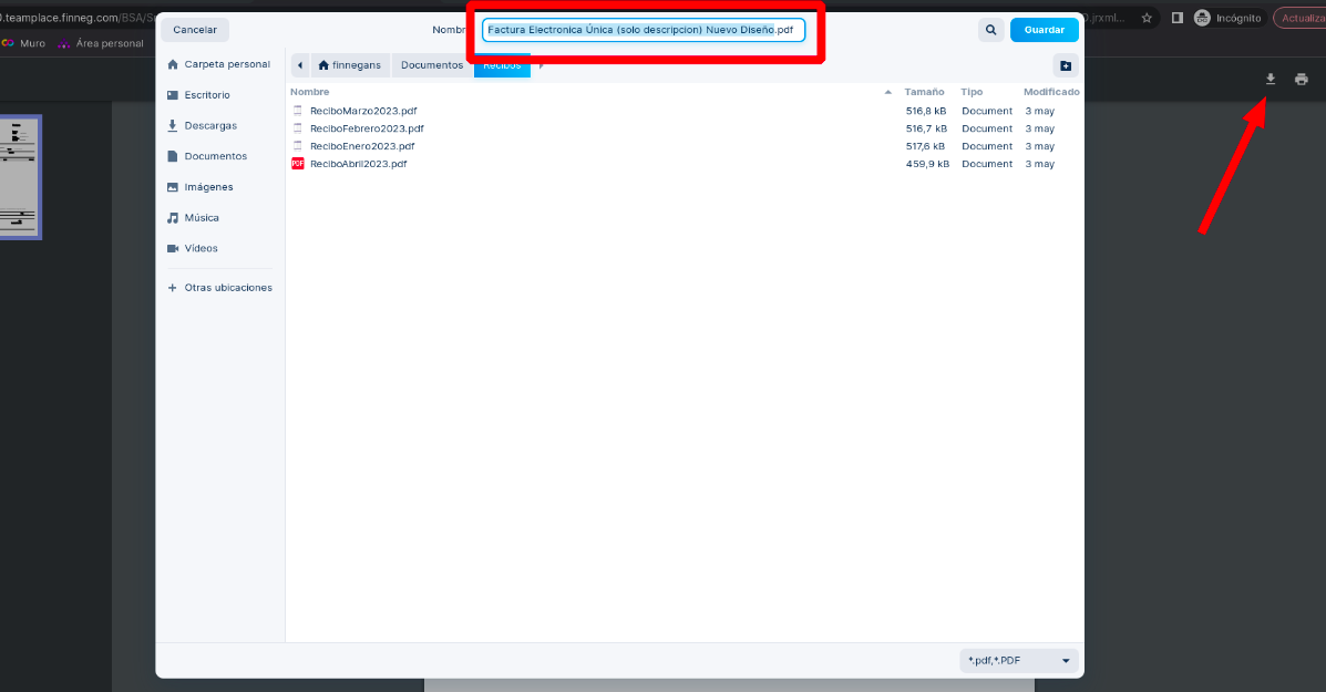 Fecha: el PDF se genera con el nombre correspondiente a la fecha del documento.