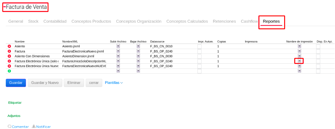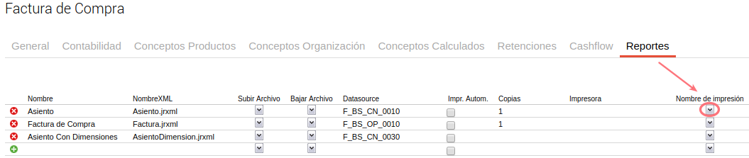 - Una vez dentro, en la solapa de Reportes, al clickear en “Nombre de impresión” podemos acceder a modificar el mismo.