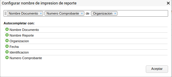 - Al clickear en el “+” se podrá agregar lo que se desea visualizar en el nombre del archivo de pdf que se descarga: