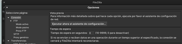 - Si se va a subir un backup de más de 1 GB, es necesario aumentar o desactivar el timeout del cliente FTP.