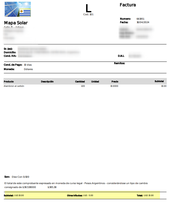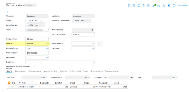 1. En la sección de los totales se va a poder visualizar el monto de la factura y el símbolo configurado en la moneda.