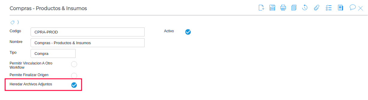 Esto se puede hacer activando el check “Heredar Archivos Adjuntos” en el workflow que se necesite.