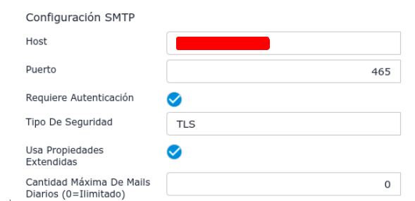 - En la sección de SMTP hay que configurar los datos asociados al tipo de servidor y seguridad del mismo (estos datos los tiene que tener el cliente o el proveedor de correo del cliente)