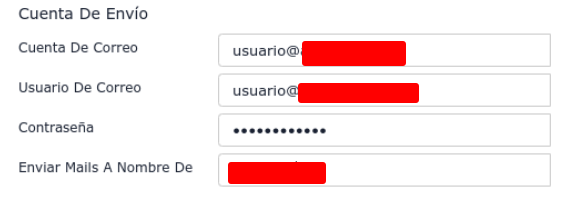 - En la siguiente sección hay que agregar las credenciales del usuario que se usará para este perfil de envío masivo.