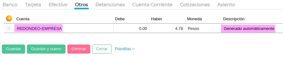 Esa diferencia de redondeo inserta una diferencia por redondeo a través de una cuenta predeterminada.