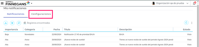 o desde la campana de notificaciones podrá ingresar a las configuraciones.