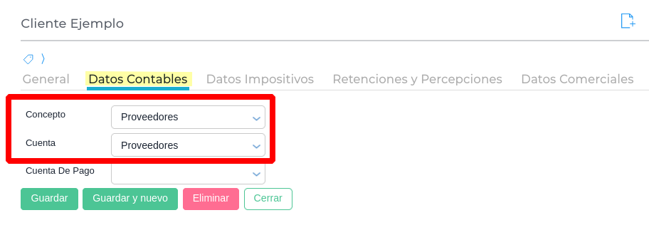 Ir a la solapa “Datos Contables” e indicar un concepto y una cuenta.