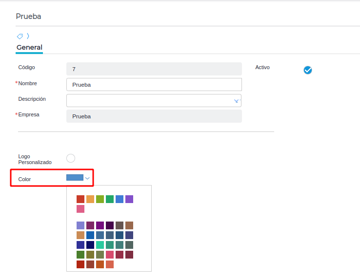 Se debe configurar el color a una empresa desde el maestro de sucursales.